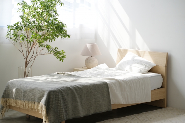 ベッドを壁際に密着させて設置すると、空気の流れが遮られて湿気が逃げにくくなります。その結果、ベッド下や背面に結露が発生し、カビの原因となることがあります。ベッドを設置する際は、壁との間に少なくとも5〜10cm程度の隙間を確保し、空気が循環できるスペースを設けることが大切です。