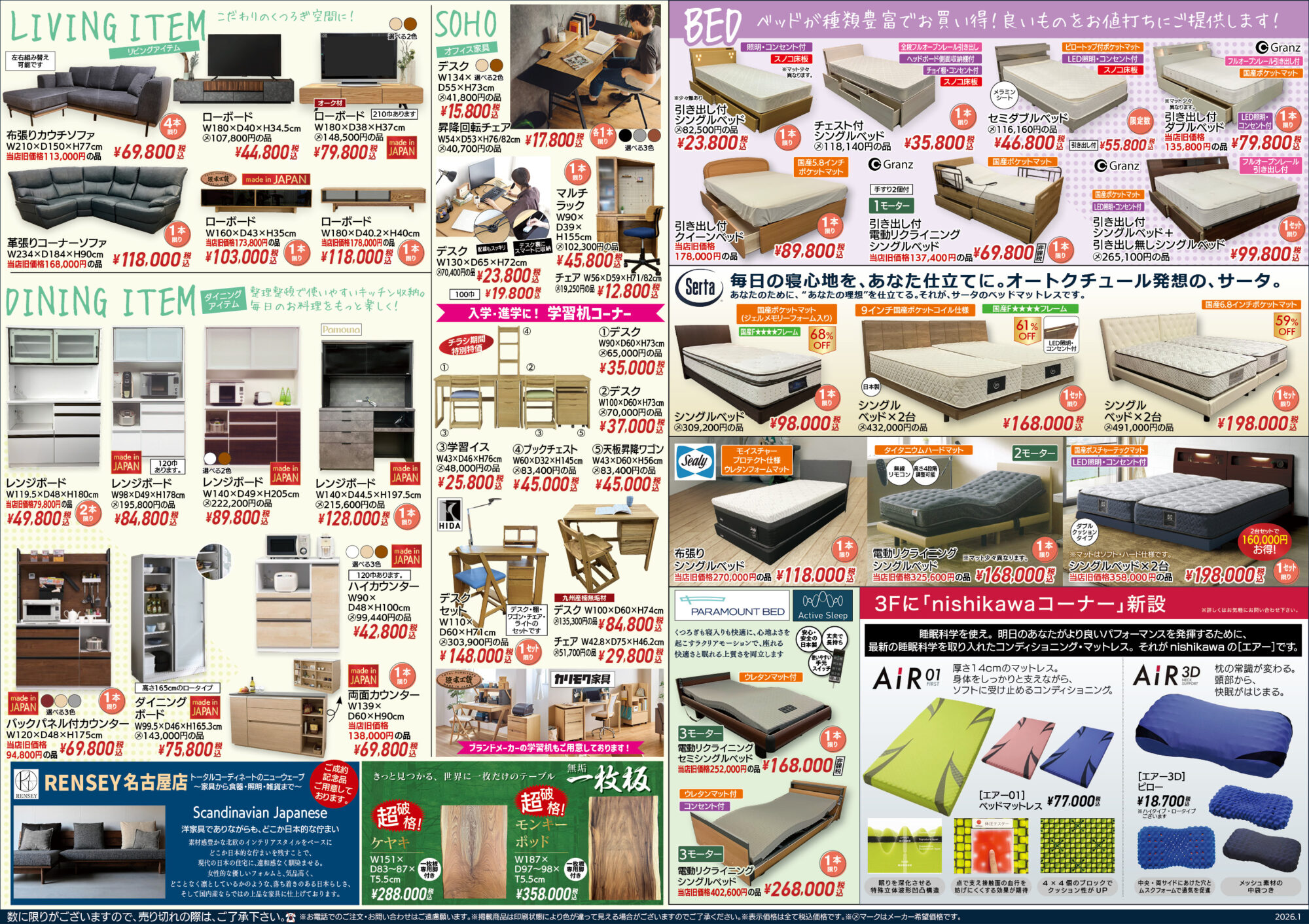 新生活応援セール!!ならではの厳選したアイテムを種類豊富に取り揃えました。また、日頃のご愛顧に感謝を込めて税込55,000円以上の商品をお買い上げで表示価格より10%OFFにてご提供。※チラシ掲載商品・現品・数量限定特価など一部除外品あり。
